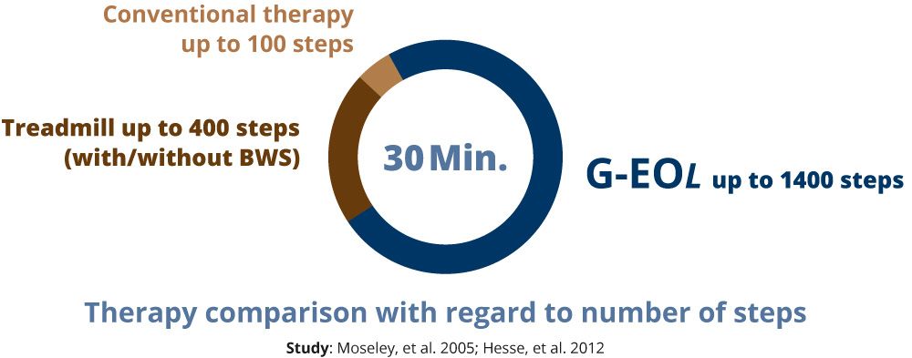 Neurological rehabilitation must be customized and tailored to individual patients with the correct intensity. To ensure a long-lasting, successful course of therapy, it is important to perform movements with a high level of repetition, for a specific task, and in a physiologically correct way. Reha Technology’s G-EOL performs a key function precisely for this targeted, early and intensive therapy.